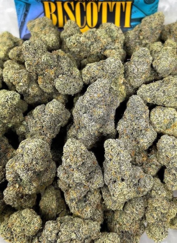 Biscotti buds appear dense, frosty, and colorful. Deep green hues mix with purple tones and bright orange pistils, forming an irresistible visual appeal. Moreover, when broken apart, each bud releases a scent reminiscent of fresh cookies and creamy dessert. Therefore, it’s no surprise this strain attracts connoisseurs who value both presentation and aroma. Additionally, the trichome coverage promises potency, ensuring that every puff delivers rich flavor and reliable satisfaction.